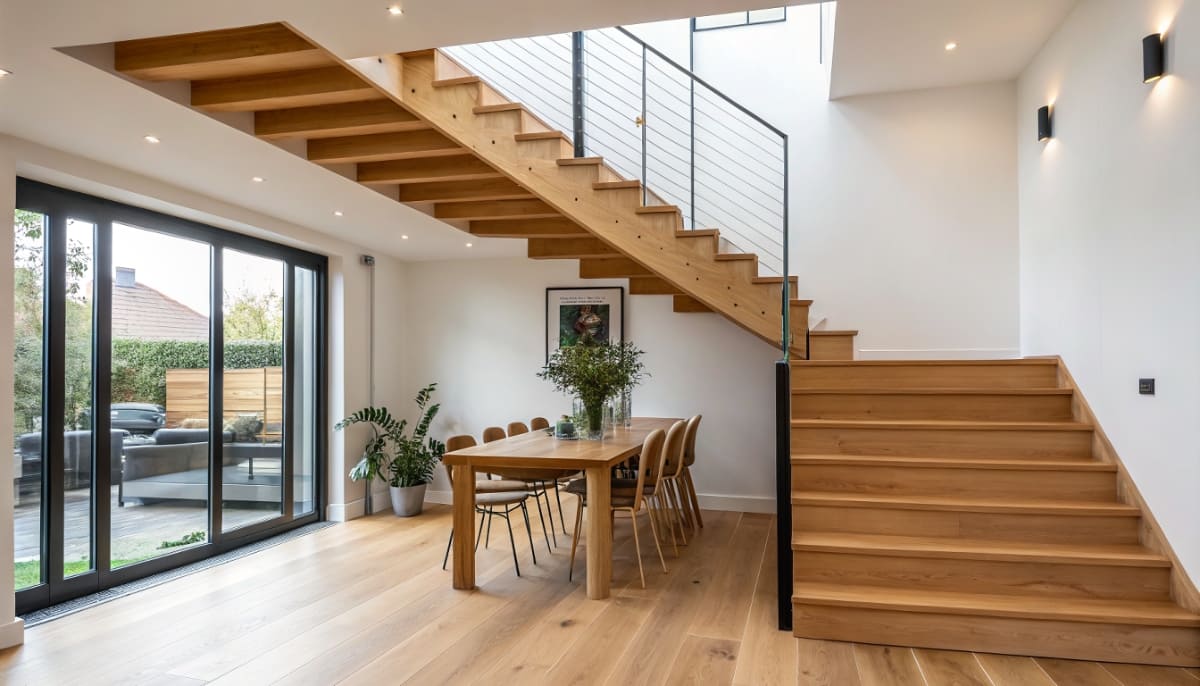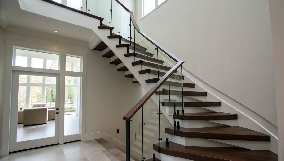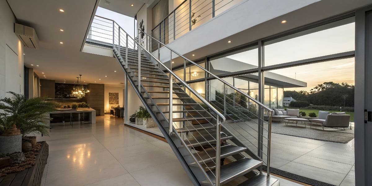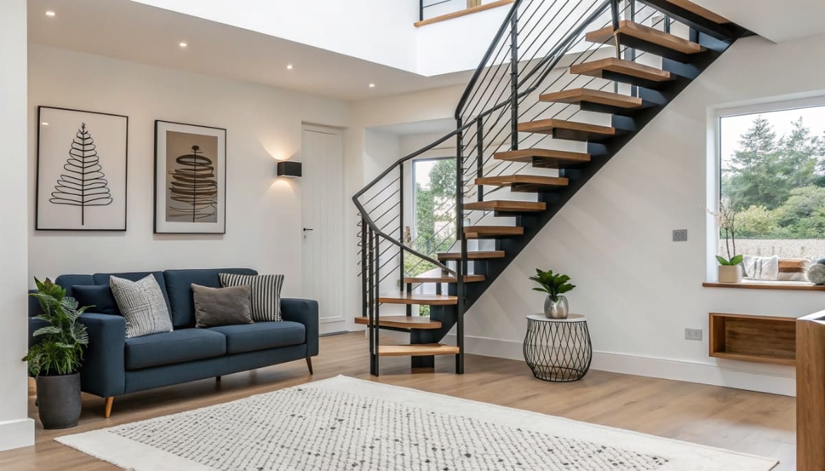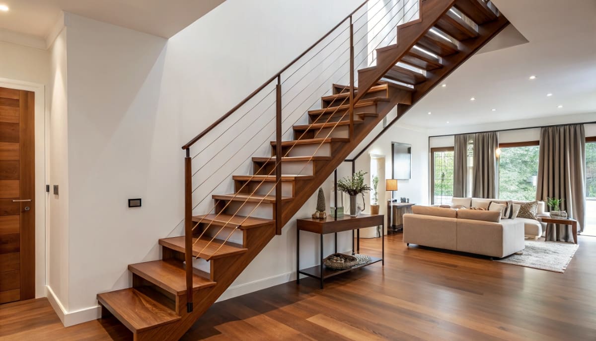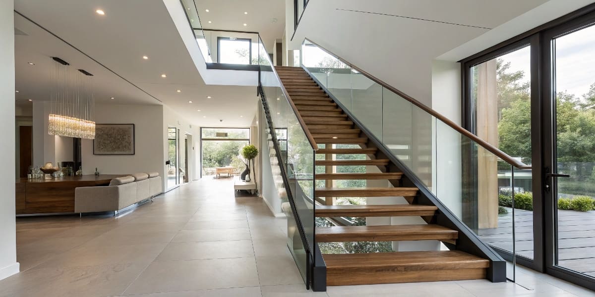 Основные типы лестниц — маршевые, винтовые, забежные. Также существуют современные варианты на больцах, косоурах и консольные, которые создают ощущение легкости, открытого пространства.