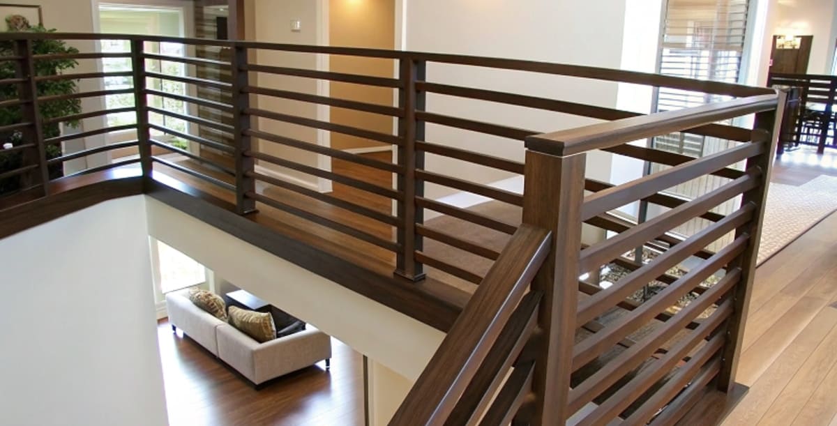Перила обязательны для комфортного передвижения. Высота ограждения обычно составляет 90–110 см. Перила подбирают в соответствии со стилем лестницы: дерево для классики, металл, ковка — для лофта, стекло для современных интерьеров. Поручни должны быть удобны для хвата.
