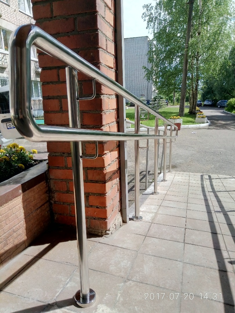 Изготовление поручней для людей с ограниченными возможностями в Вышневолоцком доме-интернате для престарелых и инвалидов. Высота поручней – 900 мм, материал изготовления - нержавеющая сталь. Опорные приспособлен...ия крепятся таким образом, чтобы за них было удобно браться. Поручни из нержавеющей стали практичны, долговечны и не требуют особого ухода. Кроме того, поручни выдерживают высокую нагрузку, что повышает удобство и безопасность при перемещении.
