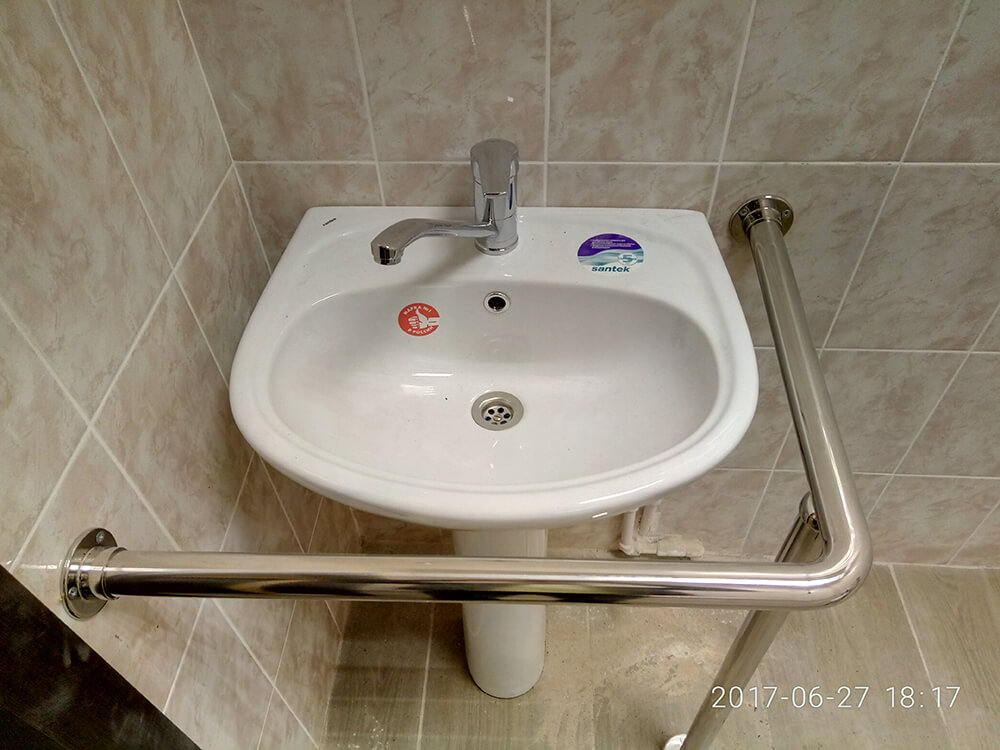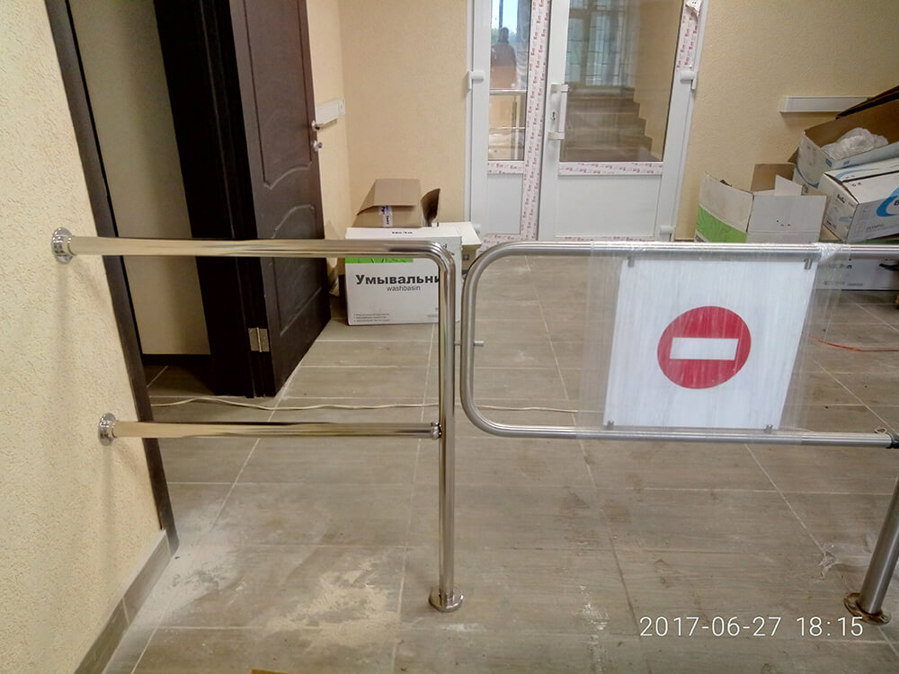 Изготовление ограждения для турникета, перил и поручней для инвалидов из нержавеющей стали для Спировского районного суда. Ограждение обладает достаточно широким проходом, позволяющим проносить крупногабаритные ...грузы и обеспечивающим беспрепятственный проезд инвалидных колясок. Перила изготовлены согласно ГОСТу Р 15.111: выполнены по СНиП с двойным поручнем на высоте: верхний поручень - 900 мм, нижний-700 мм. Опорные поручни облегчают гигиенические процедуры людям с ограниченными возможностями, позволяя адаптировать санузел так, чтобы им могли пользоваться все люди, посетившие районный суд.