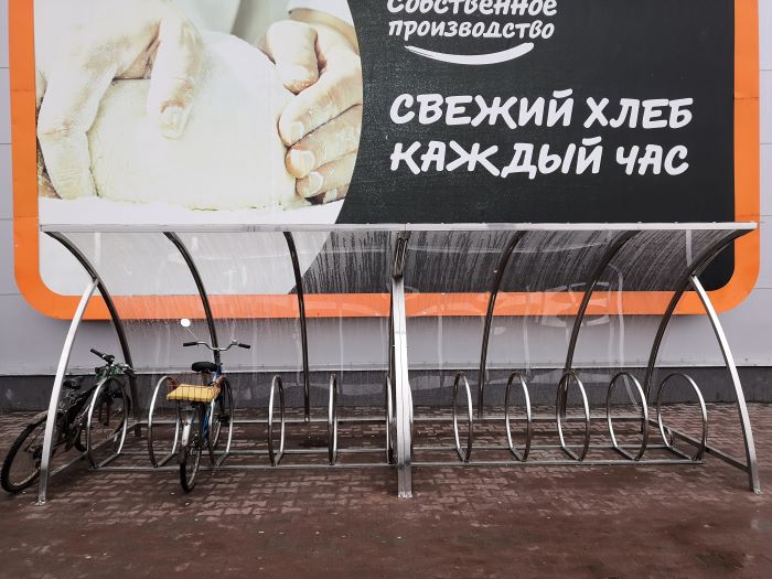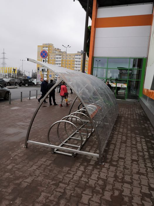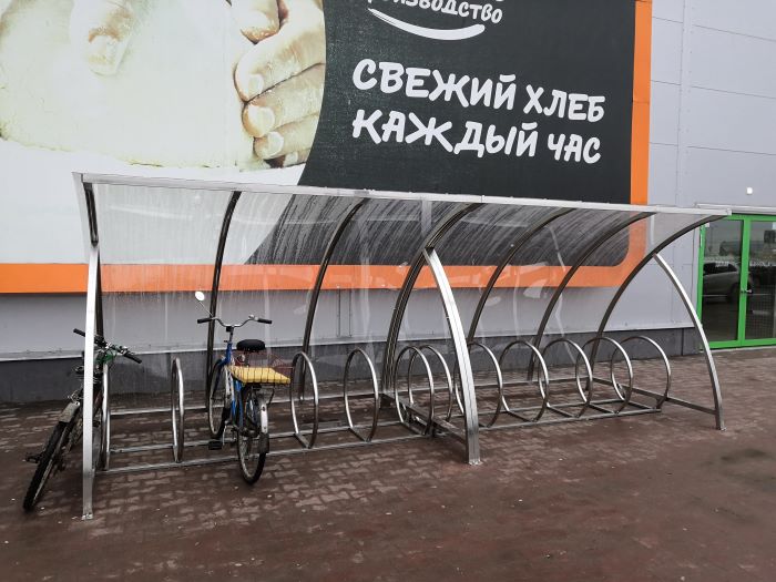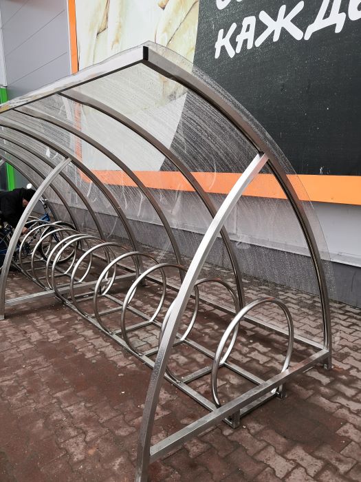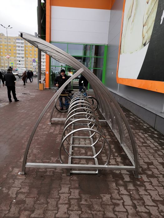 Велопарковка из нержавеющей стали для гипермаркета Глобус отвечает всем действующим стандартам безопасности. Изготовлена по индивидуальным чертежам. Отсутствие рисков для образования коррозии позволяют устанавли...вать ее на открытом воздухе без дополнительных навесов и козырьков. Велопарковка дает опору на оба колеса, фиксирует велосипед, не позволяя ему скатываться, а также дает возможность припарковать велосипед с рамой нестандартной конфигурации