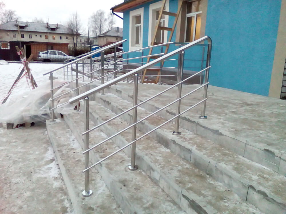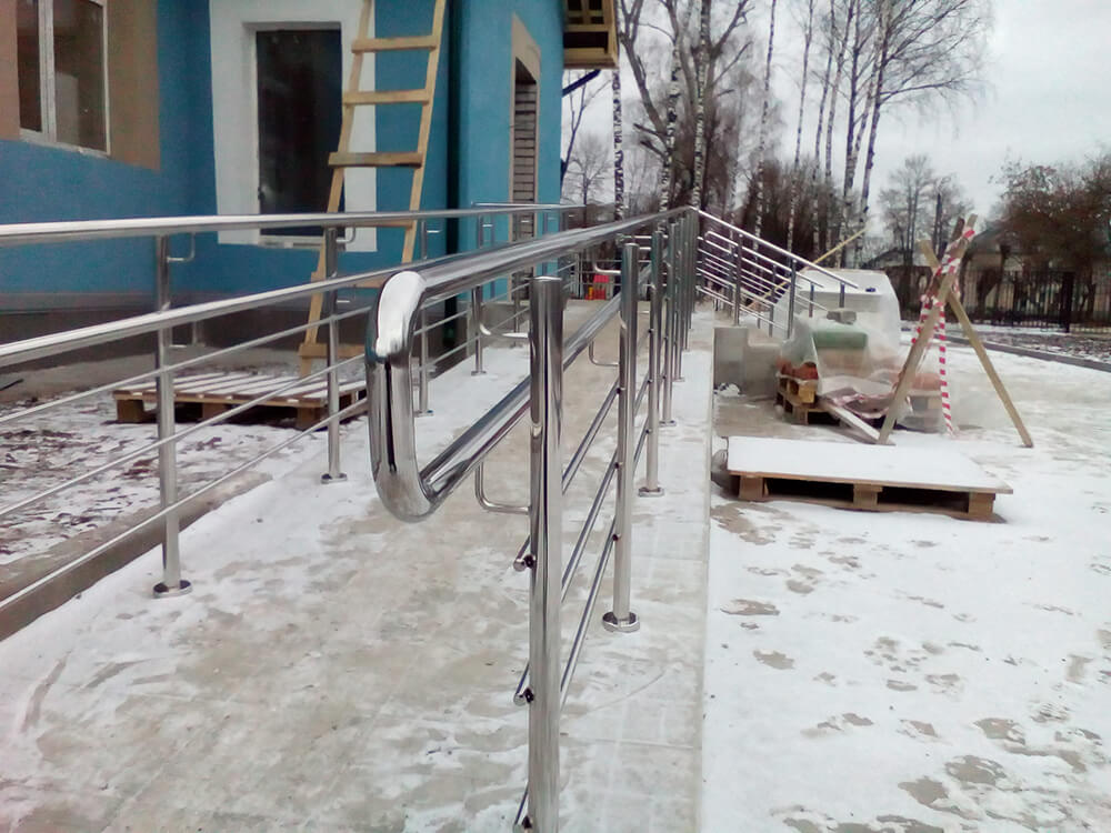 Изготовление перил и поручней для инвалидов из нержавеющей стали в общеобразовательную школу № 31, ул. А. Томского. Изготовлены согласно ГОСТу Р 15.111. Перила были выполнены по СНиП с двойным поручнем на высоте...: верхний поручень - 900 мм, нижний-700 мм. Предназначены для обеспечения безопасного передвижения маломобильных людей на территории школы. Данные перила и поручни помогут людям с инвалидностью передвигаться по школе без посторонней помощи.